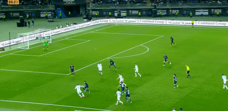 第90+4分钟,巴黎打反击,维蒂尼亚中场长传,巴尔科拉前插到禁区左侧头球摆渡,贡萨洛·拉莫斯跟进凌空抽射破门。