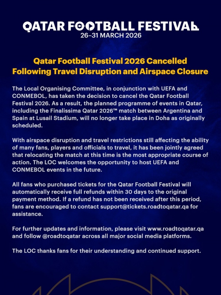 2026年卡塔尔足球节因旅行中断和领空关闭取消